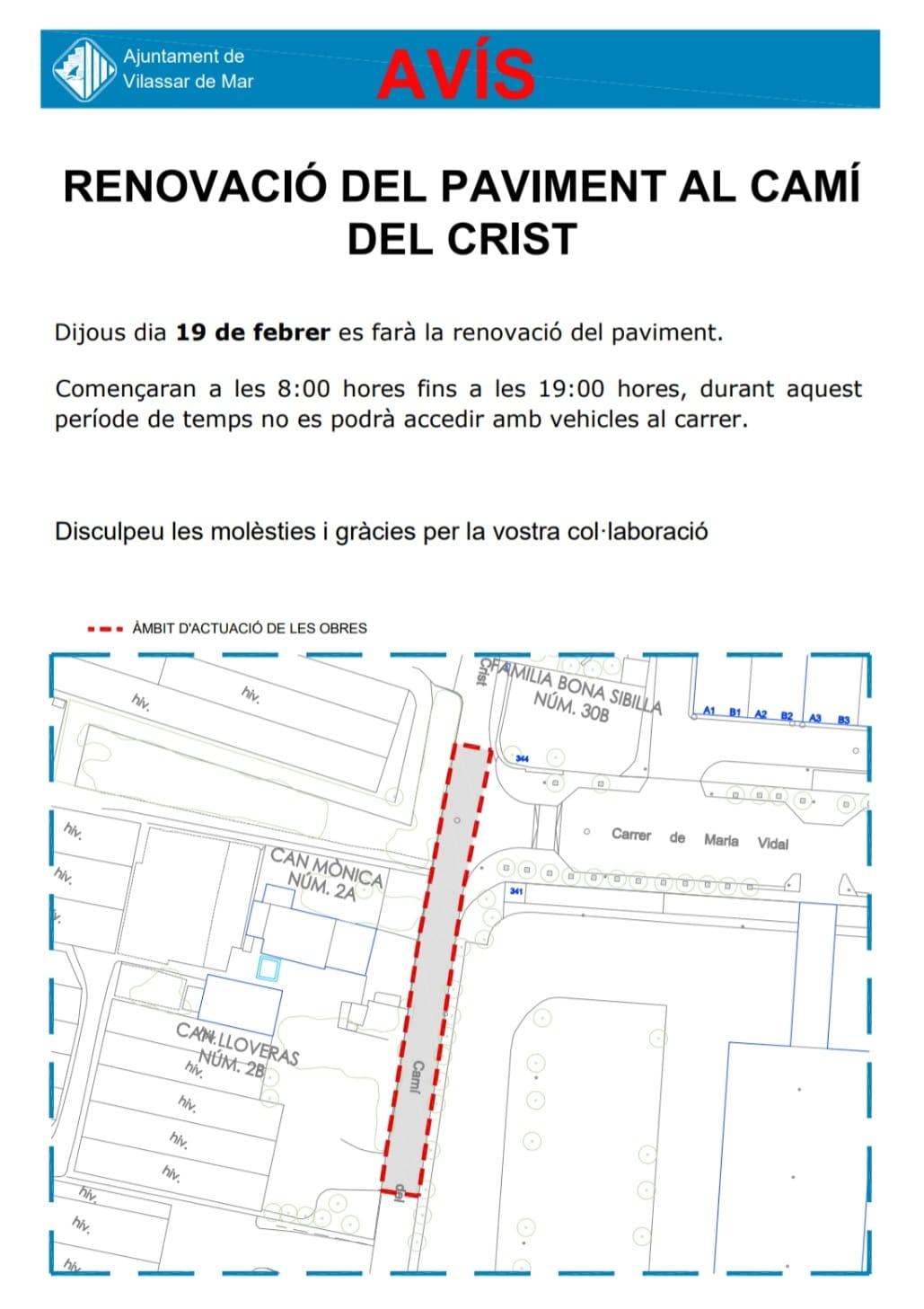 Al febrer es duran a terme quatre intervencions amb l’objectiu de millorar la seguretat i l’accessibilitat. Durant l’execució de cadascuna de les actuacions no es podrà accedir amb vehicles a les vies afectades dins l’horari de treball establert. Per aquest motiu, es recomana als veïns i veïnes que planifiquin amb antelació els seus desplaçaments.