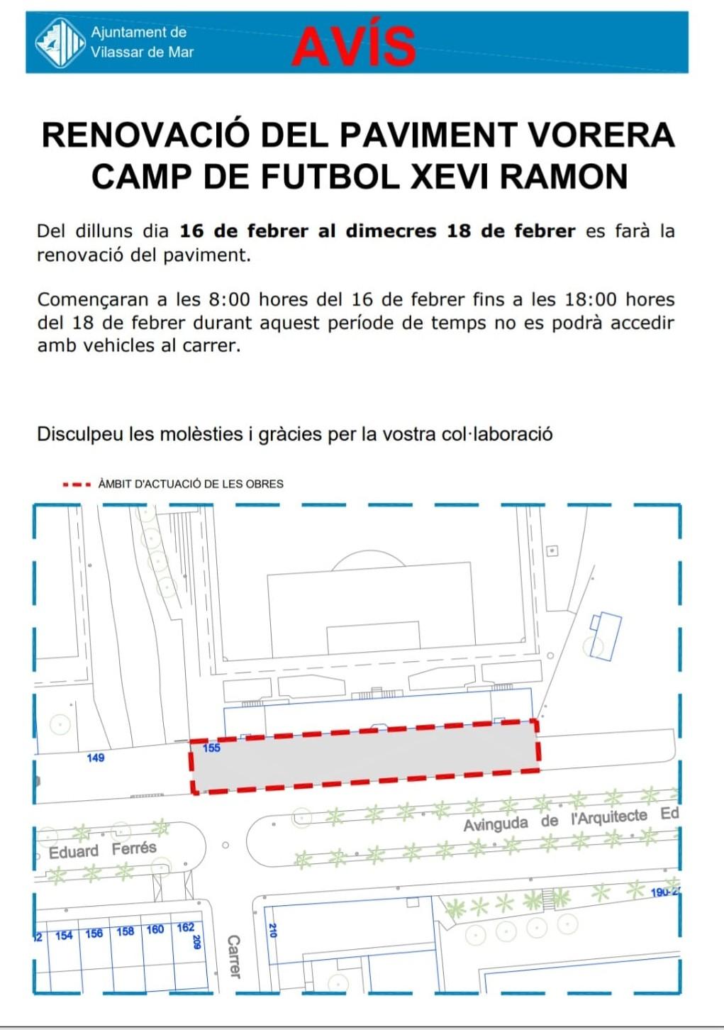 Renovació del paviment de la vorera del camp de futbol Xevi Ramon.