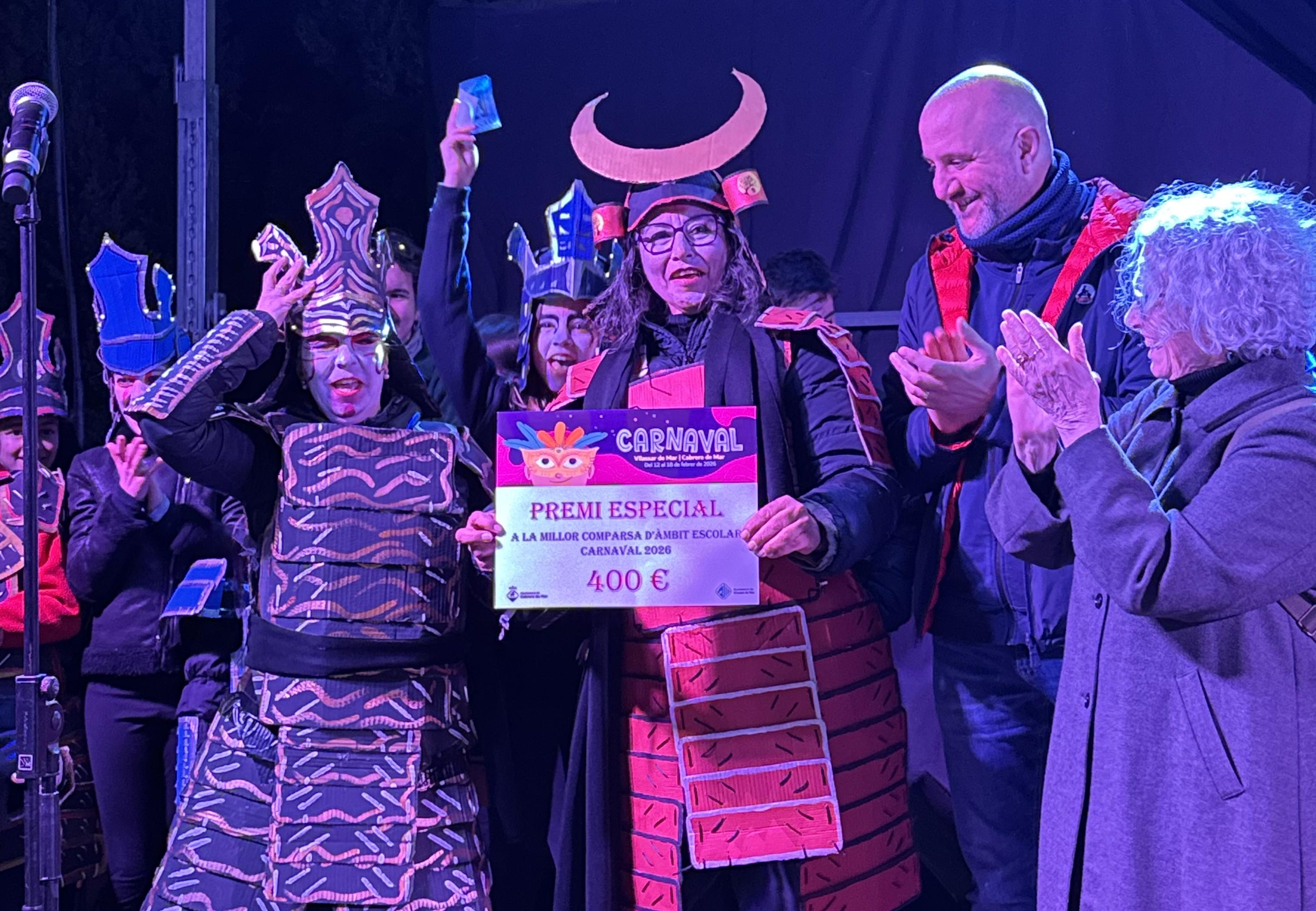 La comparsa Érase una vez va guanyar el primer premi a millor comparsa (1.000 €) de la gran Rua de Carnaval 2026 conjunta de Cabrera de Mar i Vilassar de Mar. El grup va aconseguir la preferència del vot, amb una inspiració de carrossa i vestuari de l'antiga civilització inca. El Grup Organitzador de Festes del Veral de l'Ocata es va emportar el segon premi (800 €) amb la comparsa Simbiòtiques, una fusió de futurisme platejat i natura. Las Reinas de Vilassar va aconseguir el tercer premi (700 €) amb la comparsa El Reino de Pascua, que va traslladar als assistents al món dels conillets de Pasqua. El quart premi (500 €) el va guanyar Cabrera és espectacle amb la comparsa Alícia al país de les meravelles, una coreografiada representació del clàssic de Lewis Carroll. La seva reina de cors va reclamar la seva corona i es va proclamar la Reina del Carnaval 2026 (200 €).