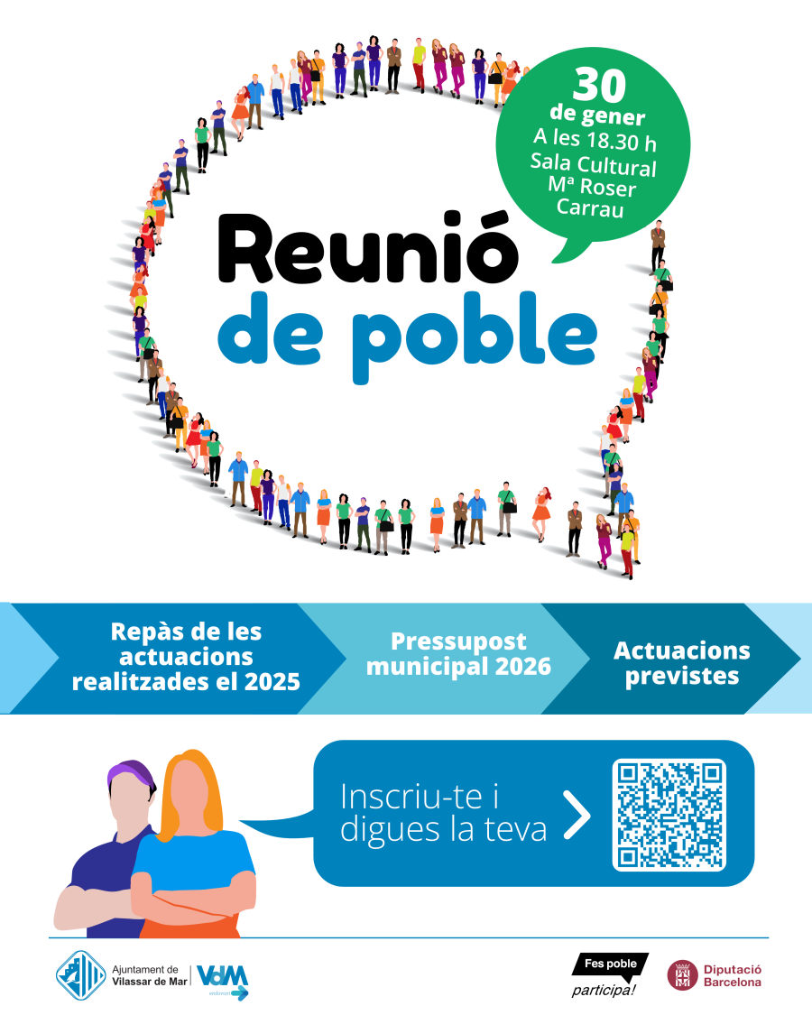 Després de la bona acollida de la primera Reunió de Poble, el 6 de juny de 2025, l’Ajuntament ha organitzat una segona trobada amb la ciutadania, que tindrà lloc el 30 de gener, a les 18.30 h, a la Sala Cultural M. Roser Carrau.